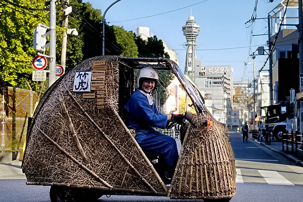 【竹虎】日本唯一の虎竹電気自動車「竹トラッカー」大阪ラン御堂筋~高島屋~通天閣