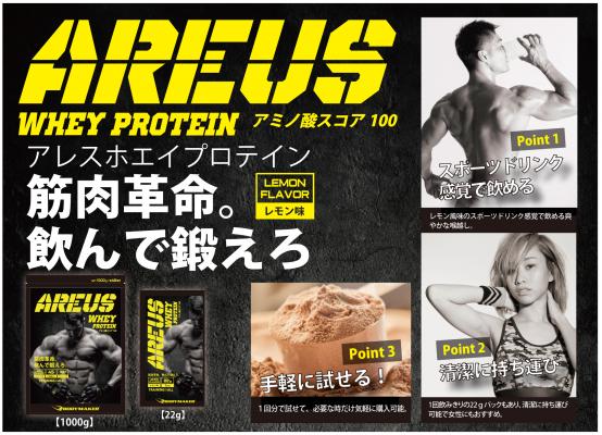 BODYMAKER 初のプロテイン待望の発売! 筋肉革命。飲んで鍛えろ!「アレスホエイプロテイン」が11 月より全国のボディメーカー直営店及びオンラインストア(https://www.bodymaker.jp/shop/)で販売を開始しました。