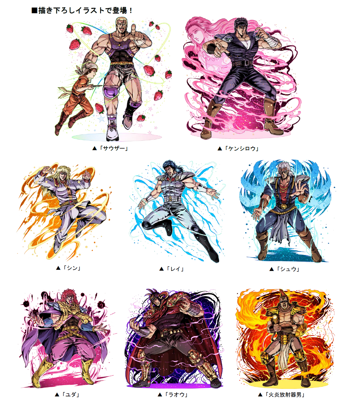 ドラゴンポーカーのキャラクターが『北斗の拳 イチゴ味』の衣装で登場!