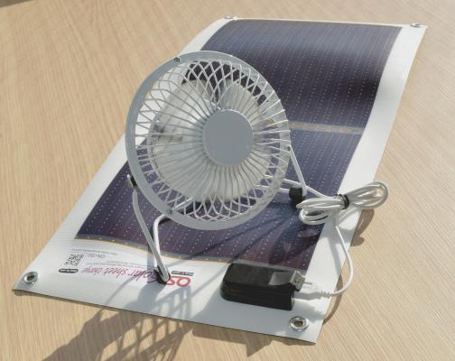 ・電源のないところで、太陽光で発電できるソーラーシート。
