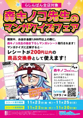 名称:らしんばん全店対象 森キノコ先生のマンガクイズフェア