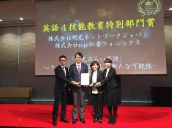 児童英語教育39年の株式会社mpi松香フォニックス(本社:東京都渋谷区、代表取締役社長:竹村 千栄子)と個別指導の学習塾「明光義塾」を全国展開する株式会社明光ネットワークジャパン(本社:東京都新宿区、代表取締役社長:田上 節朗) とで共同開発した小学生向け英語学習プログラム「明光みらい英語」が、第15回 日本e-ラーニング大賞にて「英語4技能教育特別部門賞」を2018年11月14日に受賞しました。