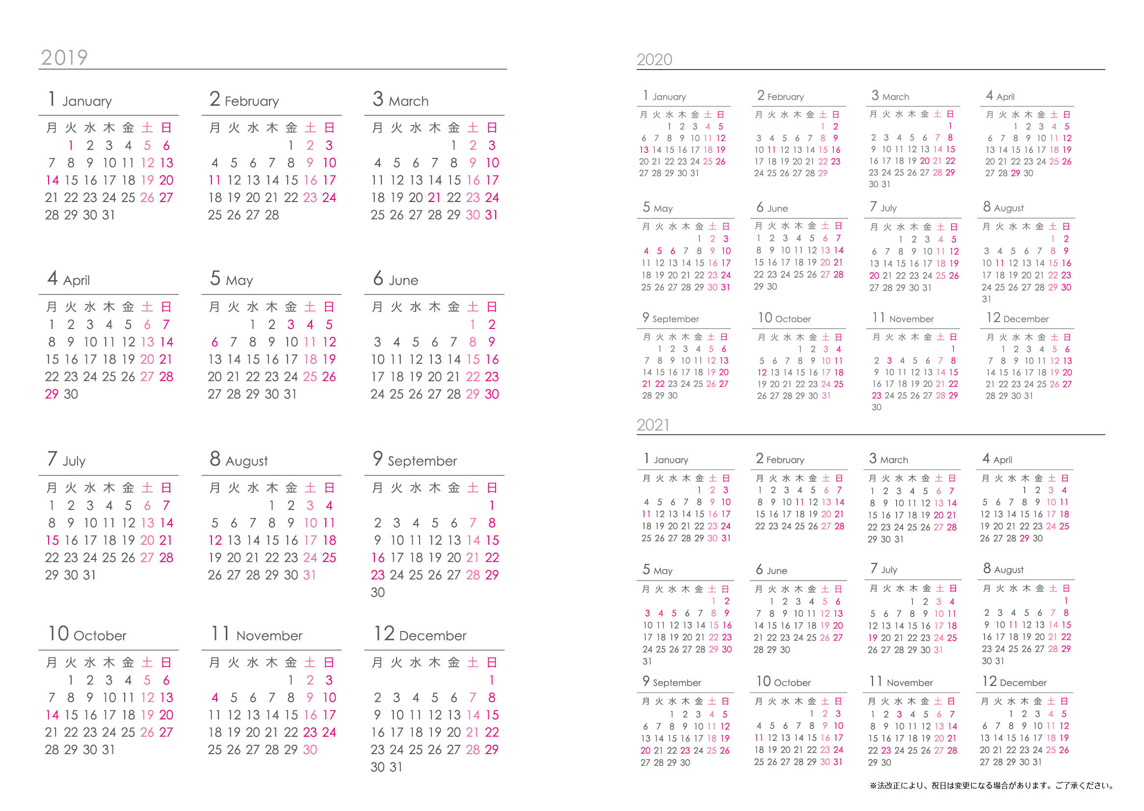 ・カレンダーは月曜始まり。月曜日は何かをスタートさせるのに向いている日です。