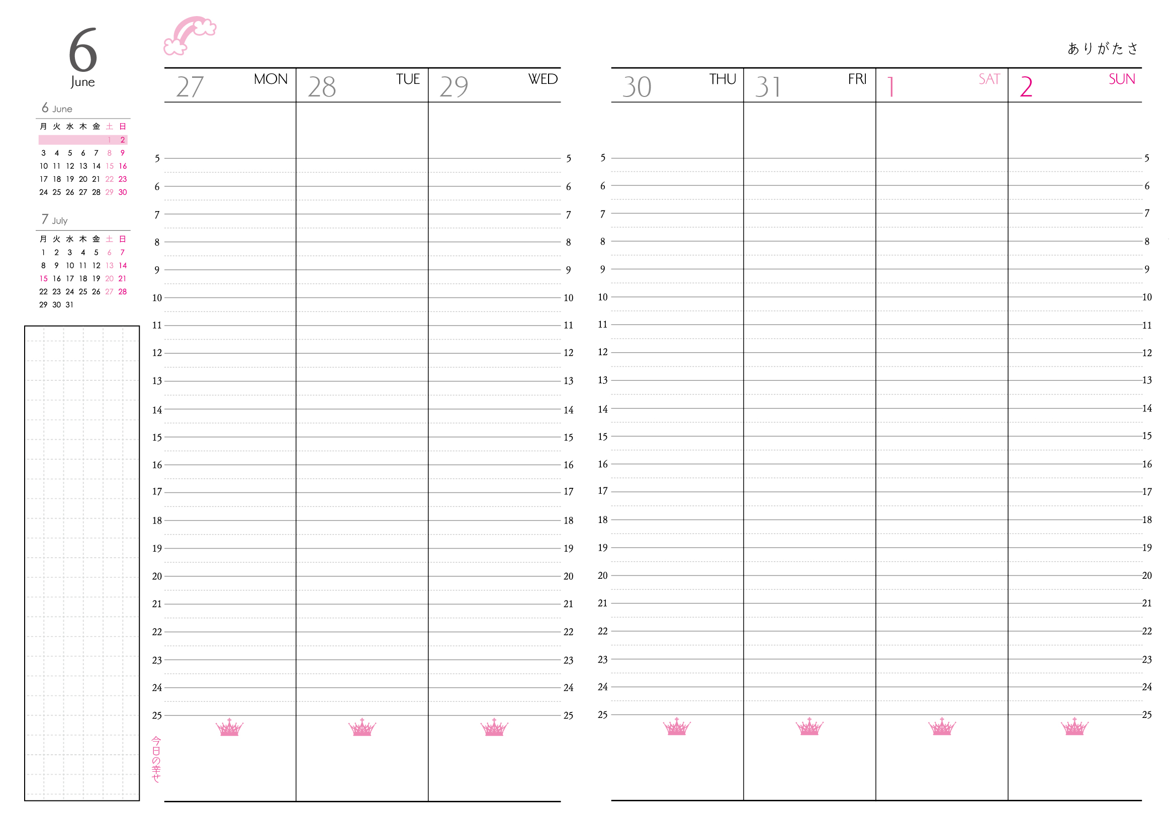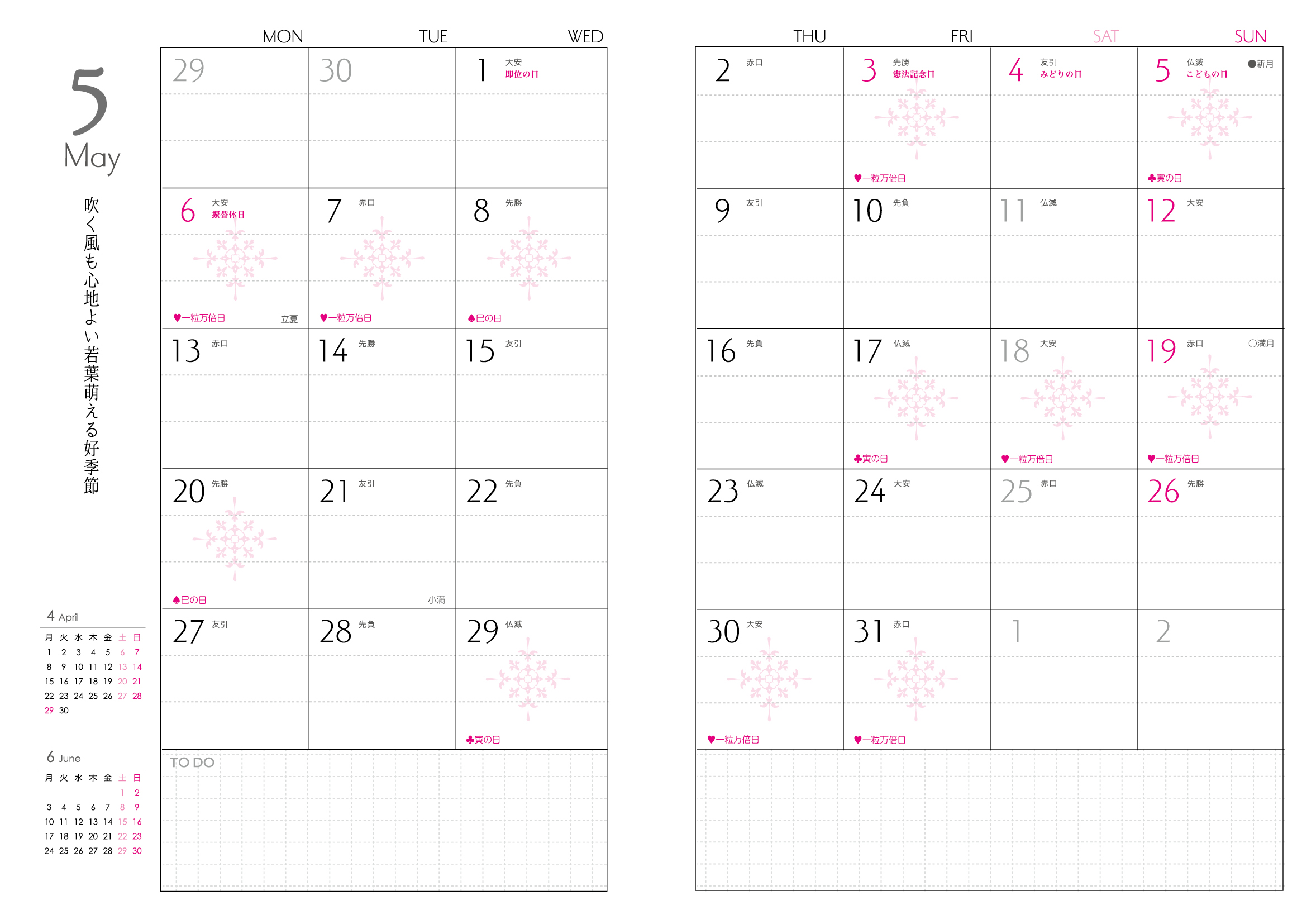 月曜始まり・マンスリー・週間バーチカル・一粒万倍日・天赦日・寅の日・巳の日・己巳の日・月齢・六曜