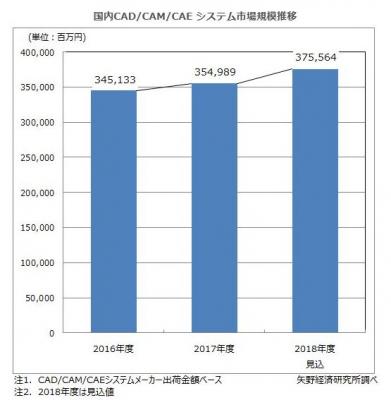 2017年度の国内CAD/CAM/CAEシステム市場規模は前年度比2.9%増の3,550億円