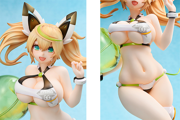 『PHANTASY STAR ONLINE 2 es』より、ヒロイン「ジェネ」が大人気のサマーバケーション衣装で初の立体化。ボリューム満点の1/7スケールフィギュアとなってAMAKUNIより登場です。 Nidy-2D-氏デザインによる、超絶セクシーな紐ビキニ姿を忠実再現。弾ける笑顔で駆け寄るキュートなポージングで立体化しました。タイトな水着からまろび出る極上のたわわボディは、総てのジェネちゃんファン垂涎の仕上がりとなっております。