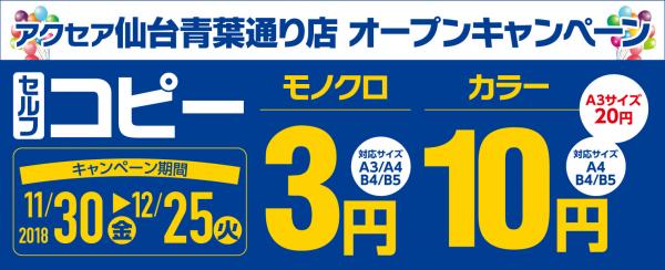 オンデマンド印刷業を展開する株式会社アクセア(本社:東京都千代田区、代表取締役社長:吉田忠司、以下アクセア)が、『アクセア仙台青葉通り店』を2018年11月30日(金)午前10時にオープンいたします。この店舗でアクセアは国内外48店舗となります。