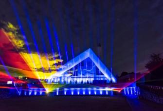 サーチライトやレーザーを用いたオーロラ演出等の光を融合。