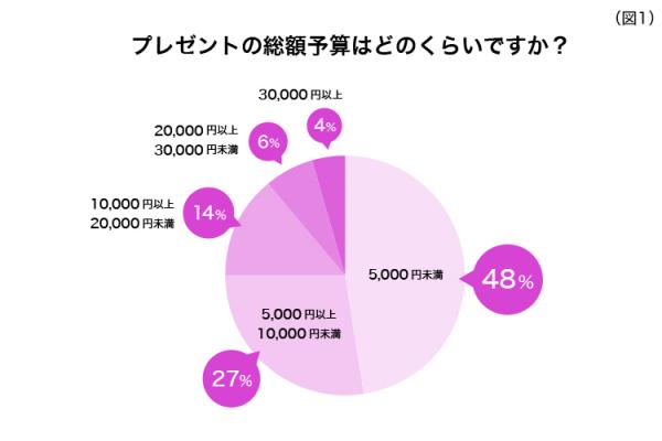 プレゼントの総額予算は「5,000円未満」が約48%と半数近くに。「5,000円以上10,000円未満」と合わせると全体の4分の3ほどで、無理のない範囲でクリスマスを楽しまれている方が多数派のようです。(※図1)