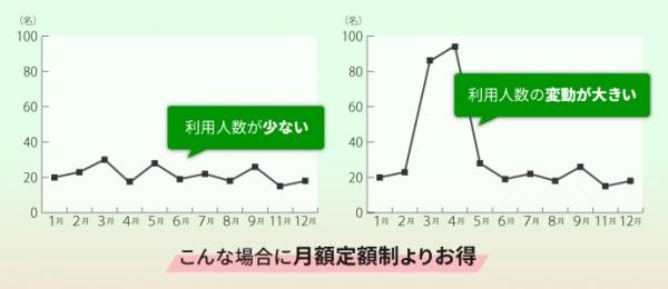 同様に、従来の月額定額制では、1,000個のコンテンツが掲載可能なプランで、148,000円なので、2,000名以下の利用であれば、従量課金の方が割安です。