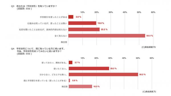 今回のアンケートでは、事業者以外のユーザーが多く答えていたため、ファクタリングや手形割引の認知度は低い結果となりました。