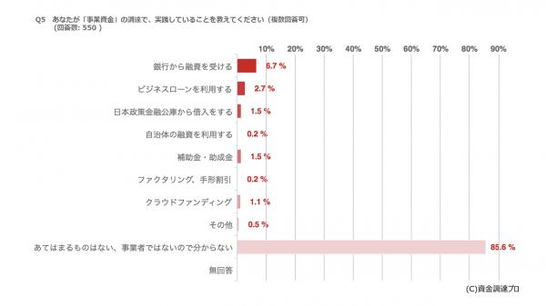 Q5. あなたが「事業資金」の調達で、実践していることを教えてください(複数回答可)。