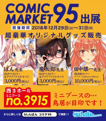 らしんばんブースでは、人気絵師「ぱん先生」「魔太郎先生」「田中雄一先生」の新作グッズセットを販売いたします。
