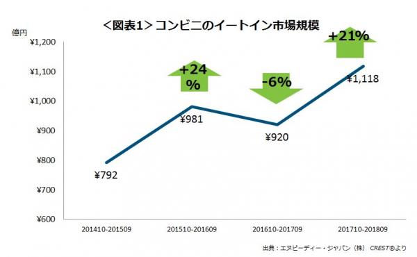 ・コンビニイートイン市場規模は1118億円で前年比21%増