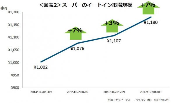 ・スーパーイートイン市場規模は1180億円で前年比7%増