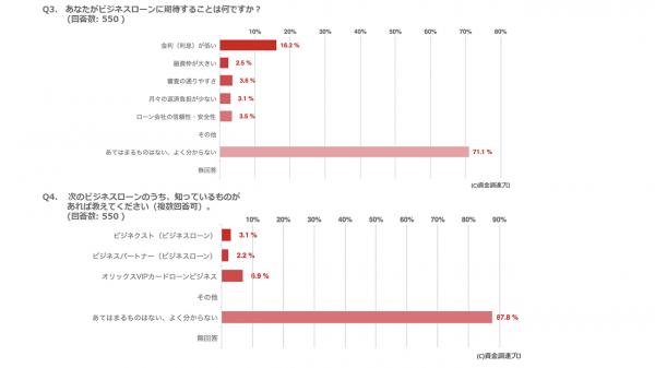 ビジネスローンについて全体の認知度が低いものの、オリックスVIPローンカードBUSINESSの認知度は、全体の7%近くを占めるなど「知名度の高さ」がうかがえました。