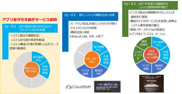 「アプリケーション保守引き継ぎサービス」でお客様のシステムを習熟した後、システムの運用を最適化するシステム構成変更の提案など顧客要望に応じたデジタルトランスフォーメーションの支援を行っています。