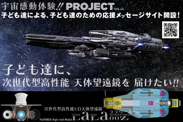 TOCOL実施の「宇宙への感動体験をつくる次世代天体望遠鏡『LaLaooz(ララウーズ)』を子ども達に届けるためのクラウドファンディング」は、みなさまの温かいお力添えあって第一目標を達成しました。
