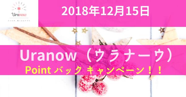 チャット占い Uranow(ウラナーウ)を運営するマリーシェル合同会社(本社:埼玉県さいたま市、代表:鯉沼寿慈)は、2018年12月15日よりUranow(ウラナーウ)において使った分に応じて還元するポイントバックキャンペーンを開始いたします。