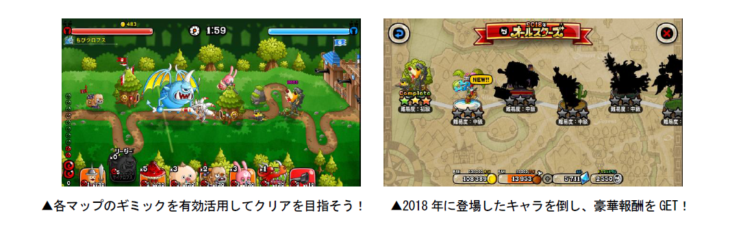 バトル内の「討伐イベント」から、「2018年オールスターズ」に挑戦できます。本イベントは、敵の城を落城させないとステージクリアとならない特別ルールとなっています。「ひとりで」「みんなで」共に1日3回まで、ルビーの消費なしで討伐に挑戦できます。クリアして、豪華報酬をGETしましょう!