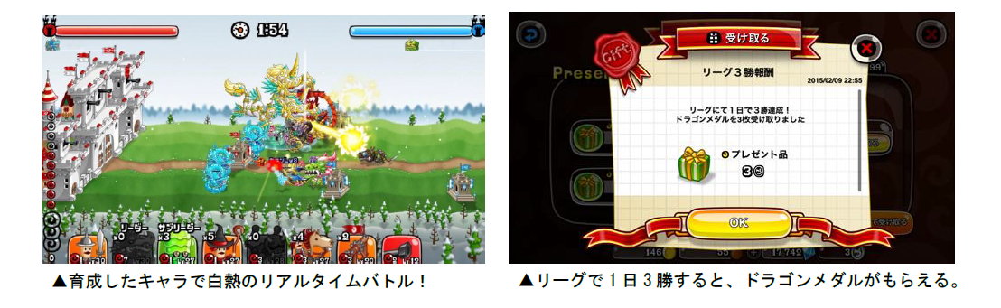 (1)「仲間と攻撃」で勝利すると「ドラゴンメダル」2枚プレゼント!(1日1回まで)