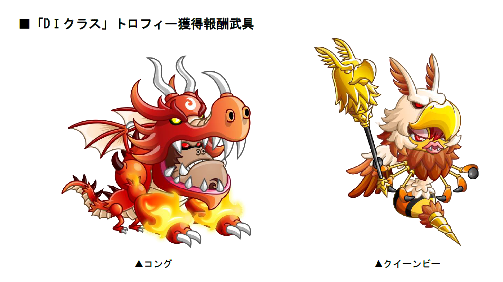 12月21日(金)メンテナンス後より、新たに2キャラの「DIクラス」を解放いたします。「DIクラス」でトロフィーを獲得すると、キャラの武具が手に入ります。この武具は手に入れるとステータスが上昇します。お気に入りキャラでトロフィー獲得を目指しましょう!