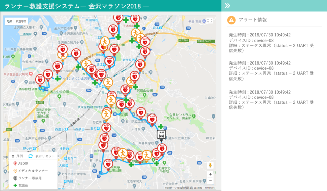 なお、今回使用したランナー救護支援システムはKDL社が、通信網はKCCS社が、位置情報を検出する為のSigfox GPSトラッカーはSMK社が、それぞれ開発・提供したものです。