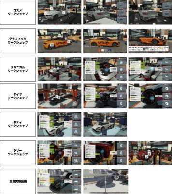 ■コスメワークショップ:純粋に車体の形状をカスタマイズするショップです。車体の外装やリア、バンパー、ホイールなどのカスタムやパーツの変更を行うことができます。※変更できるパーツは車種により異なります