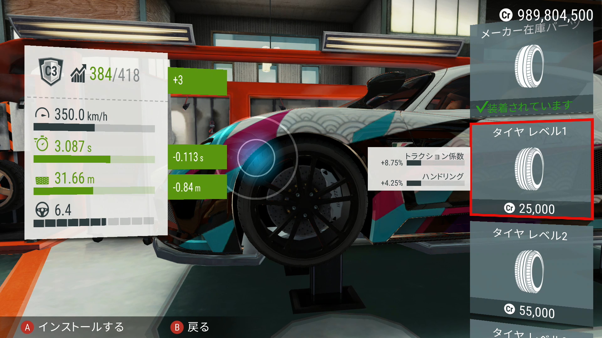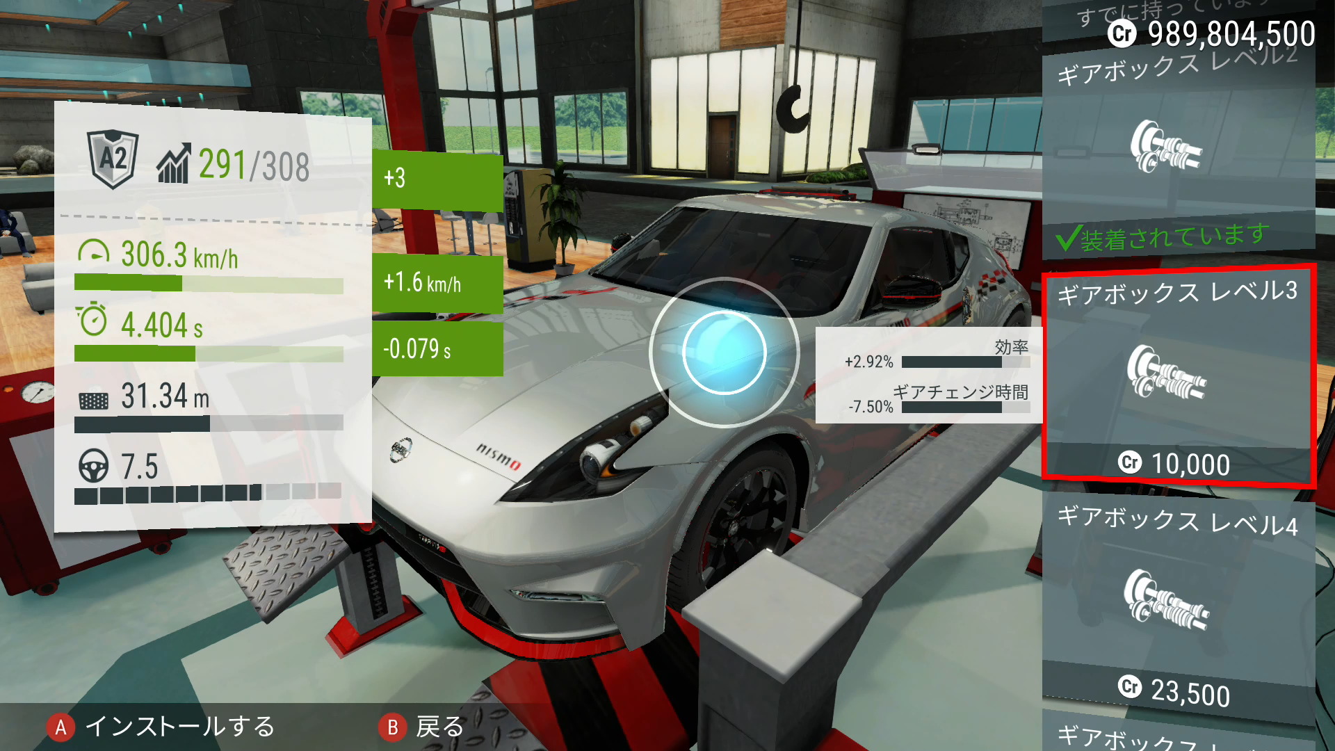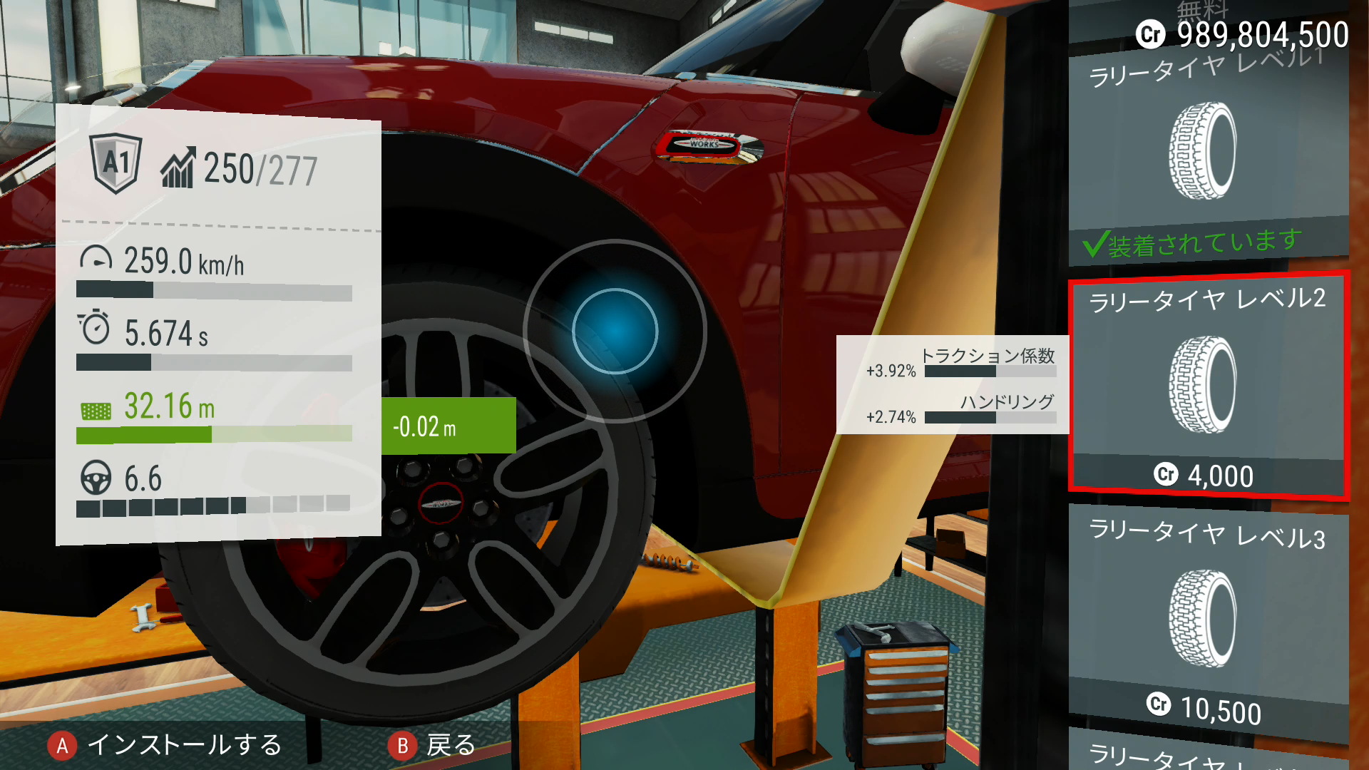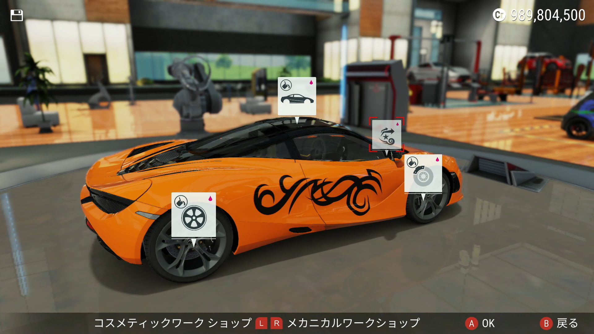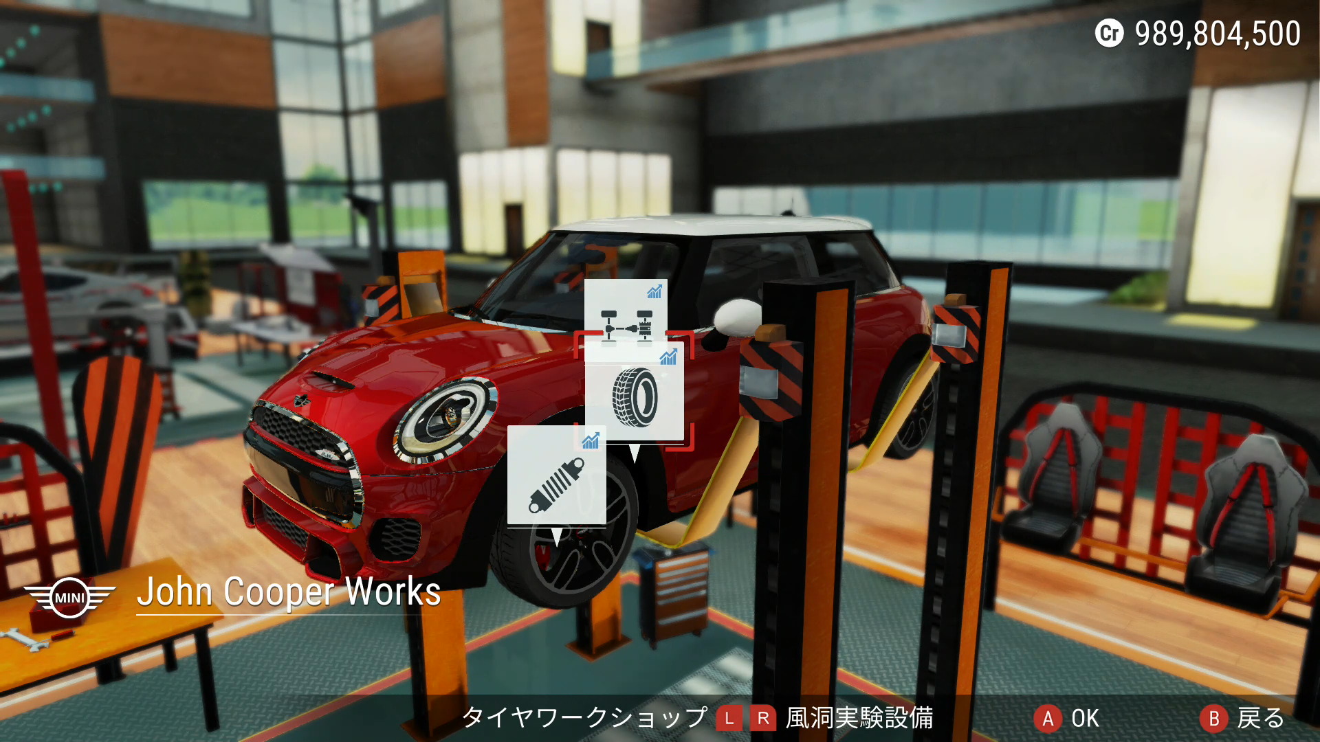パフォーマンスショップは、プレイヤーのニーズに応じたあらゆるカスタマイズ環境を提供しています。パーツの強化によりどのように走行に影響が出るのかなどを探りながら走るのもまた、本作の楽しみどころのひとつです。
