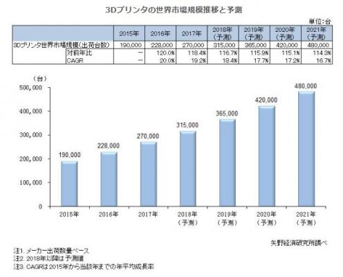 3Dプリンタ世界市場は2021年には48万台を予測