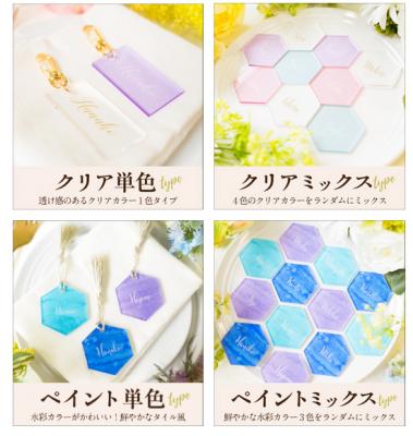 今回販売を開始する『アクリル席札シリーズ』はカラー、形のバリエーションを豊富に取り揃えております。