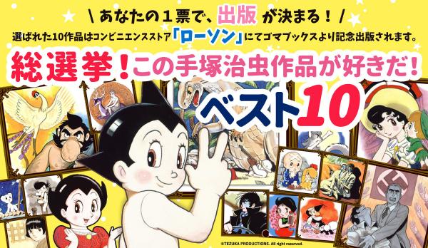 ゴマブックス株式会社(所在地:東京都港区、代表取締役社長:赤井仁)は、本日投票受付が終了する、手塚治虫生誕90周年記念『総選挙!この手塚治虫作品が好きだ!ベスト10』にて投票結果TOP3を予想する企画をスタートしましたのでお知らせします。