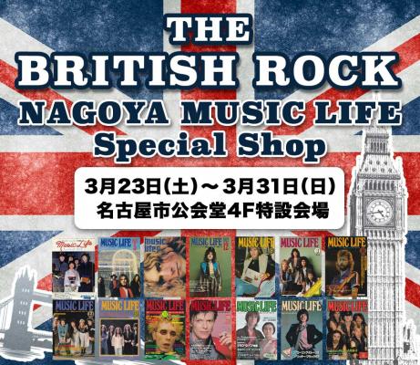 新しい世界のエンターテイメント流通ネットワーク・サービスを展開する株式会社JAMSHOPPING(本社:東京都渋谷区代表取締役:遠藤祐一)は、名古屋市公会堂のリニューアルオープン記念として開催されるザ・ビートルズの登場以降、独自の視点で数々の洋楽アーティストを紹介し続け、“日本の洋楽”シーンを作りあげた音楽雑誌“ミュージック・ライフ”から、貴重なインタビューや写真を特別公開する大展覧会「MUSIC LIFE CLUB presentsミュージック・ライフ展 名古屋SPECIAL」に併設するイベント・ストアに名古屋初となる英国ロック・グッズの祭典「THE BRITISH ROCK」をMUSIC LIFE Special Shop Produced by PGSとして名古屋市公会堂4F特設会場にて、2019年3月23日(土)~3月31日(日)まで開催いたします。