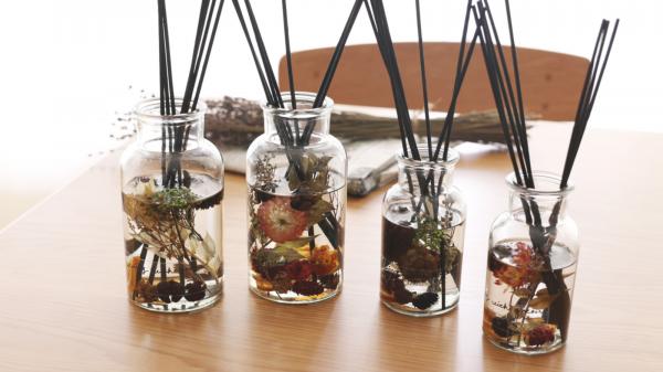 ■セット内容:ガラスボトル(ドライフラワー入)、香料ボトル、リード×10