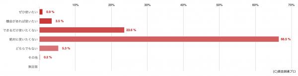 カードローンは全体の23.6%が「できるだけ使いたくない」と回答。また絶対に使いたくないという方も全体の66.5%を占めました。
