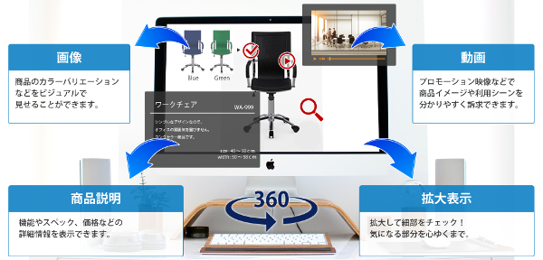 お客様にWEB上の仮想体験コンテンツを提供することで、商品の安心感を高め、さらには購入の後押しにつなげます。加えて、3Dコンテンツに商品のアピールポイントを集約することで、お客様の商品理解を促進。これからの商品紹介の形として、EC事業者の方の売上アップに貢献します。