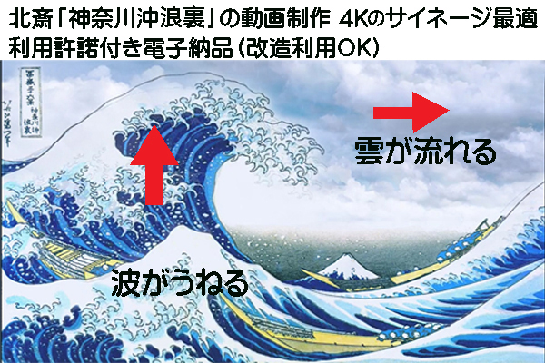 この度、北斎の神奈川沖浪裏を、動画編集して、4Kサイネージ等