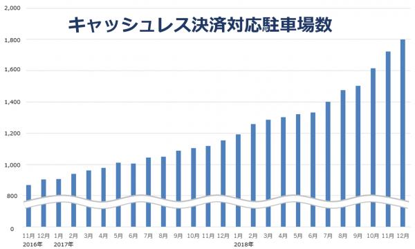 2016 年11 月に850 件でサービスを開始しました「SmooPA キャッシュレス決済」対応駐車場は、2018 年12月時点で1,800 カ所を突破しました。2019 年には3,000 カ所、2020 年には5,000 カ所を予定しております。