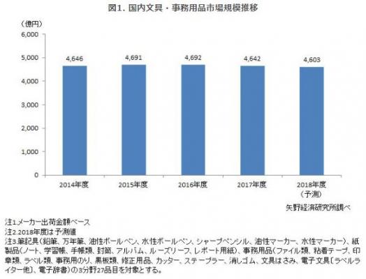 2017年度の文具・事務用品市場規模は2014年度以来のマイナス成長