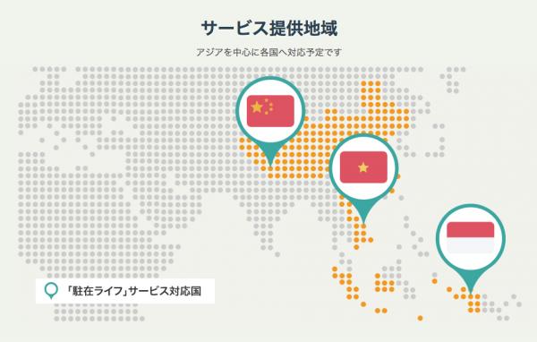「駐在ライフ」はこれまでもベトナムでサービスを提供しておりましたが、この度、中国・インドネシアもサービス対応国となりました。2019年はインド・バングラデシュ・タイなどアジア地域を中心に世界各国へ展開予定です。