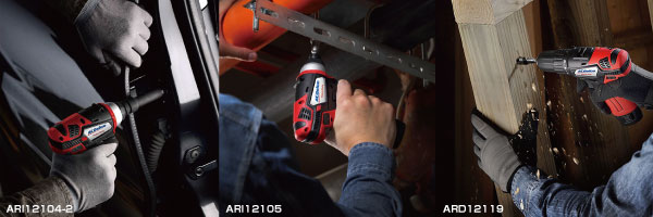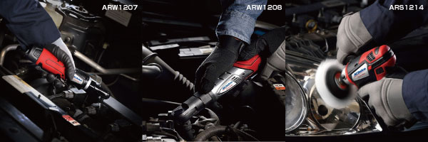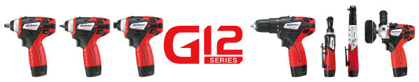 G12シリーズは作業内容に合わせて幅広いラインナップを用意しています。インパクトレンチ、インパクトドライバー、電動ドライバー、電動ラチェットレンチ、ミニポリッシャーをラインナップしています。
