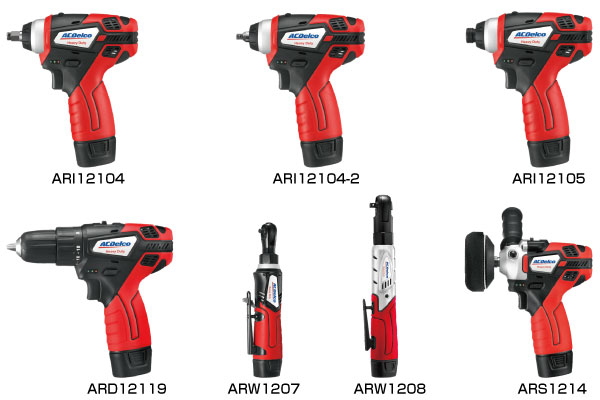 ACデルコはアメリカのプロの現場おいて高い評価を得ている信頼のおける電動工具を提供しています。G12シリーズは軽量かつコンパクトなサイズで設計されおり、作業性に優れた電動工具です。煩わしいケーブルを排除したコードレス設計でストレスなく作業を行うことができます。作業内容に応じて選べるG12シリーズは、インパクトレンチ、インパクトドライバー、電動ドライバー、電動ラチェットレンチ、ミニポリッシャーをラインナップしています。