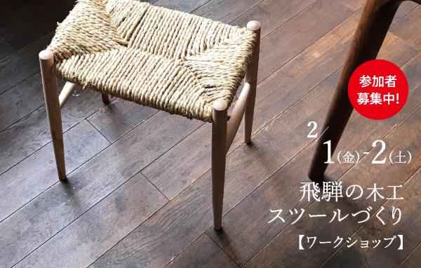 今回、THE COVER NIPPONで開催される「飛騨展」(会期 2/1-28)関連イベントとして、飛騨のスツールづくりを体験していただけます。講師には、心地良さやオリジナリティを大切にモノづくりをしている『飛騨職人生活』をお迎えします。この機会に、ぜひ自分だけの愛着溢れるスツールを作ってみませんか?