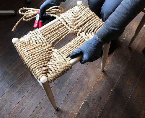 スツールの座面に、藁縄(わらあみ)を編み込んで完成させます。脚の部分は、組み立て・オイル仕上げ済みのものを用意しておりますので、長く安全にお使いいただけます。『飛騨職人生活』の職人がサポートしますので、どなたも安心してご参加ください。