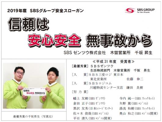 SBSグループは、従業員ひとり一人が安全意識を常に持ち事故ゼロを目指すため、2019年度SBSグループ安全スローガンを決定しましたのでお知らせいたします。