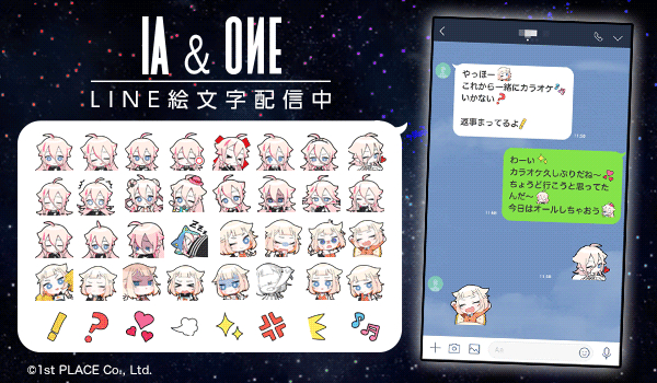 ニコニコ生放送など各種メディアでも紹介され、今年で7周年・4周年を迎える大人気ヴァーチャルアーティスト「IA(イア)」「ONE(オネ)」のLINE絵文字とLINE着せかえを同時配信致しました!