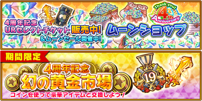 期間中は、4周年に因んで4連ガチャが毎日タダで引けます。
