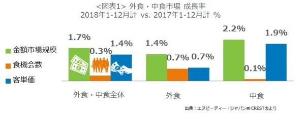 外食・中食市場情報サービス『CREST(R)*1』を提供するエヌピーディー・ジャパン株式会社(東京都港区、トーマス・リンチ代表)は、外食・中食市場2018年計(1-12月)の動向分析レポート(速報値)を2019年1月30日に公表します。