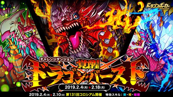 株式会社アソビズム(本社:東京都千代田区、代表取締役:大手智之)は、App Store・Google Playにて好評配信中のリアルタイム合体カードバトル『ドラゴンポーカー』で、2019年2月4日(月)より、復刻チャレンジダンジョン「覚醒ドラゴンバースト」を開催いたします。