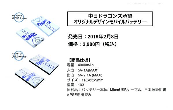 ●オリジナルデザインモバイルバッテリーで中日ドラゴンズを応援しよう!